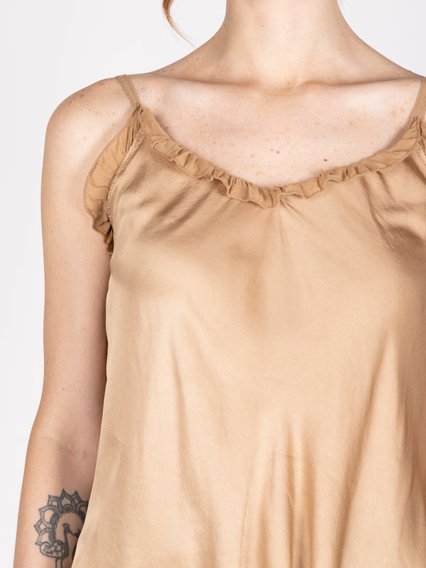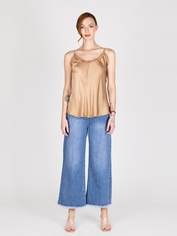 Top satinado manga corta cognac lineatre