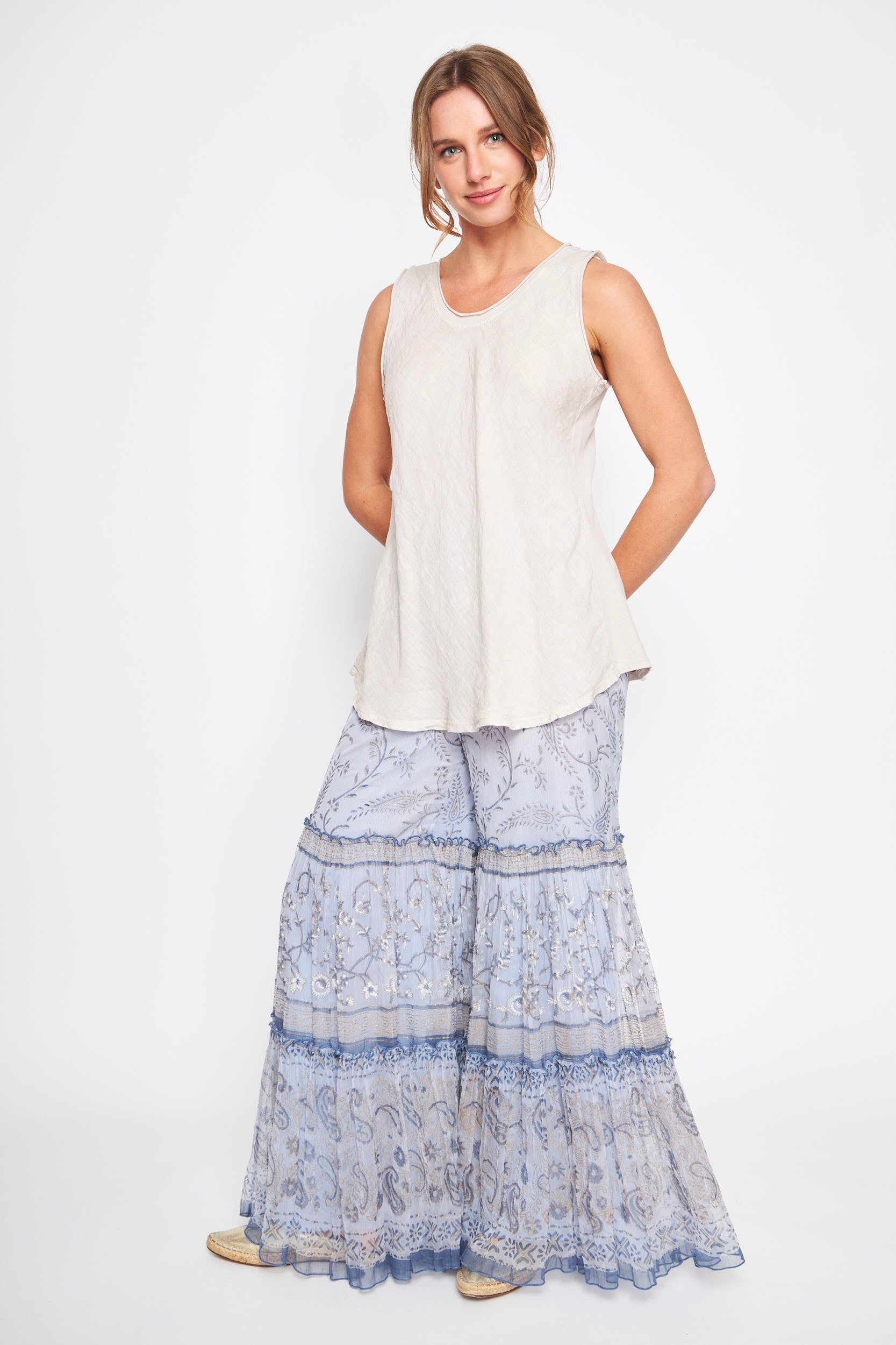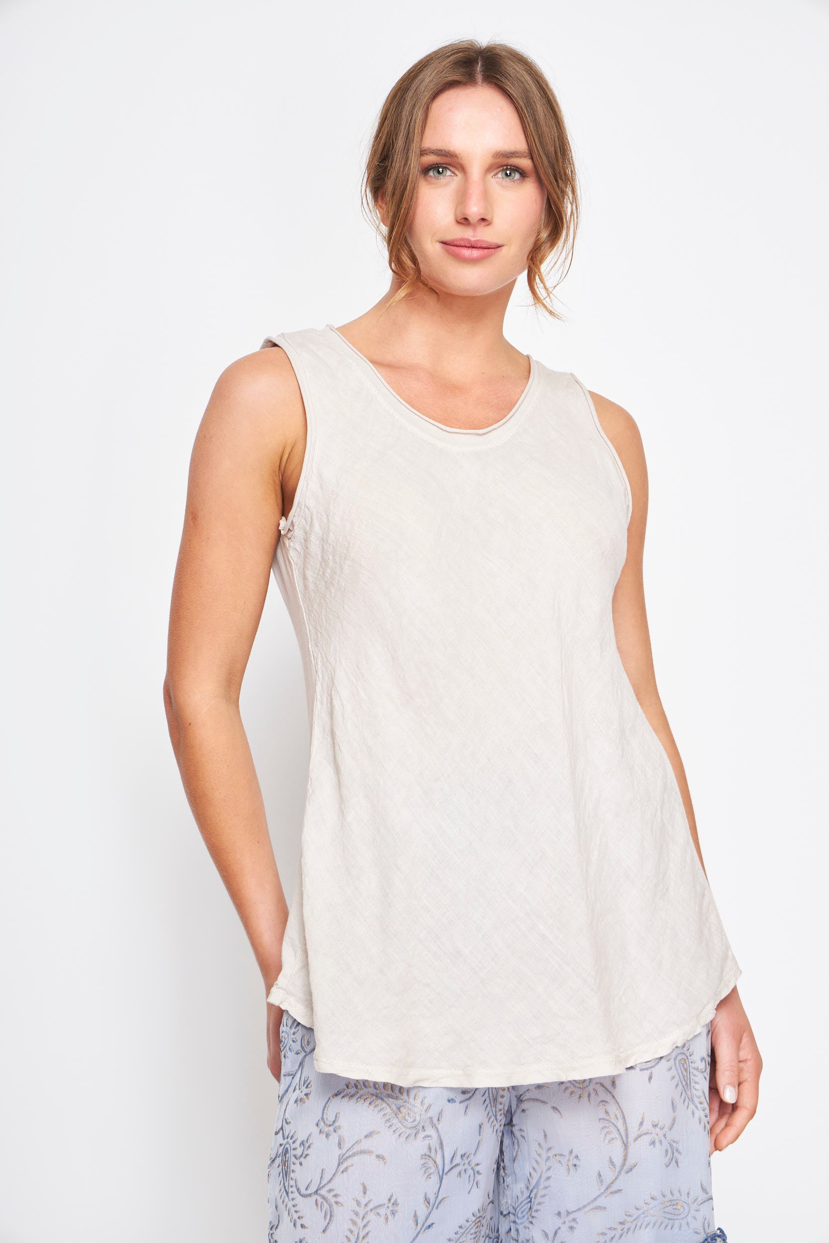 - Descripción: Este top de lino con escote redondo es la elección perfecta para un look fresco y elegante. Su diseño sencillo y sofisticado lo convierte en una prenda versátil para cualquier ocasión.
