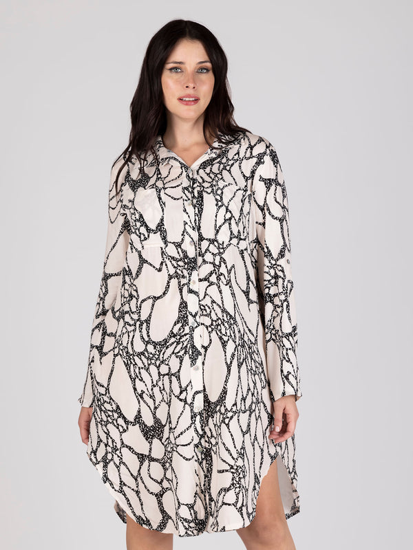 Vestido mini camisero, mangas 3/4. Ideal para looks casuales