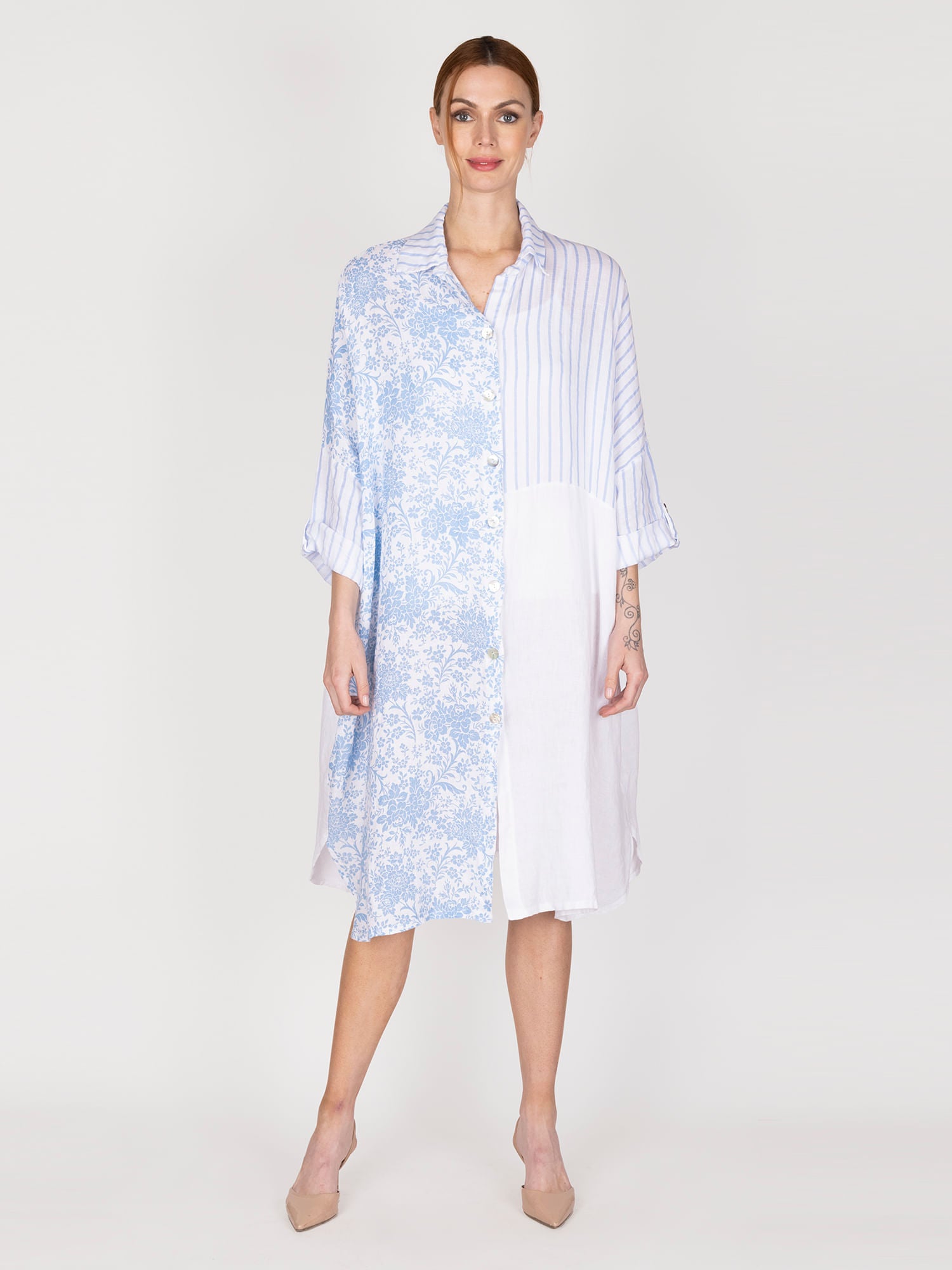 Vestido camisero manga larga con doble estampado. Ideal para looks casuales.
