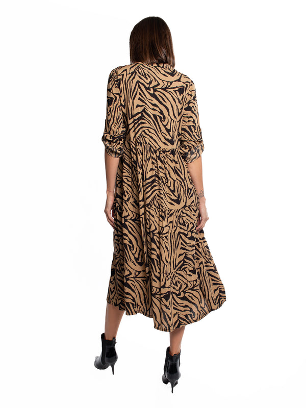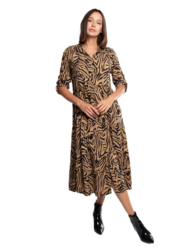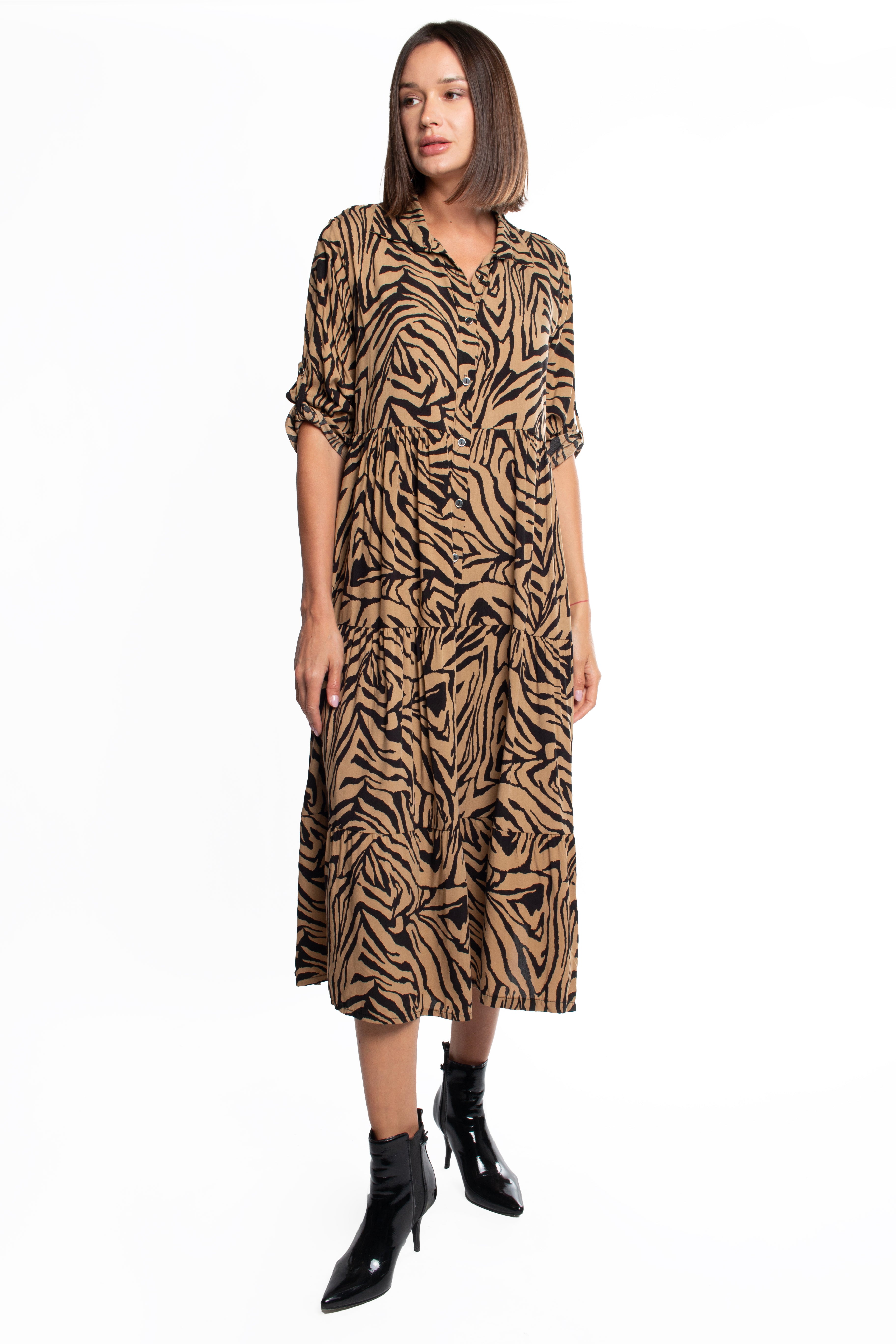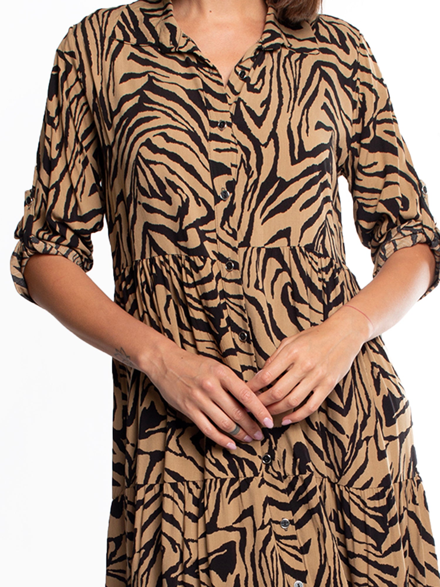 vestido estampado manga 3/4 abotonado parte delantera ideal para look casual